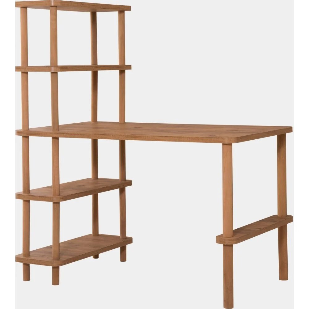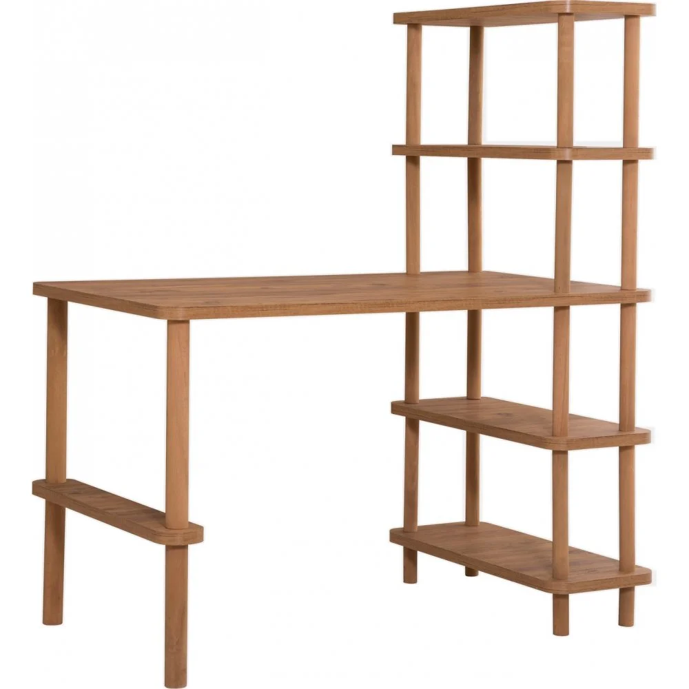 Skrivbord av melaminbelagd spånskiva och avenbok.