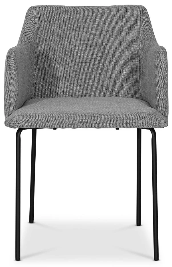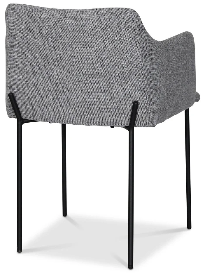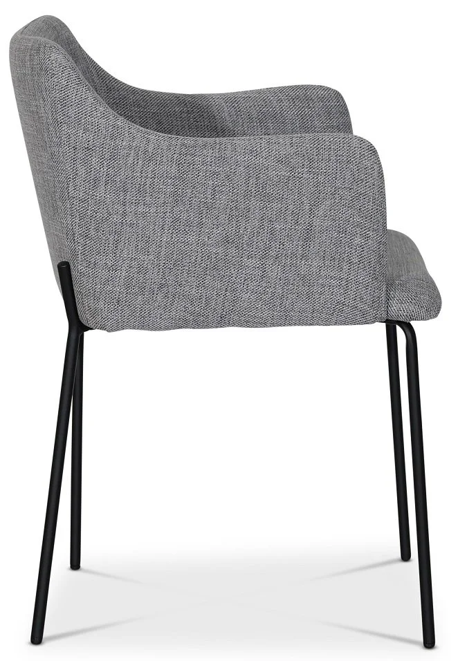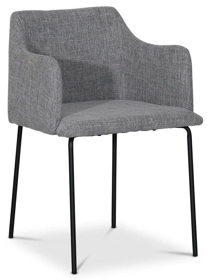 New York karmstol i en slank design med svarta stålben. Ljusgrått mjukt tyg. Passar perfekt till både moderna matbord och klassiska matbord.
