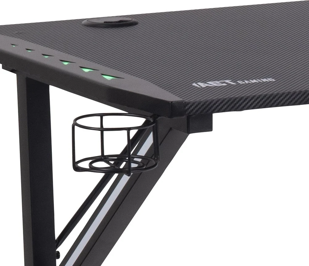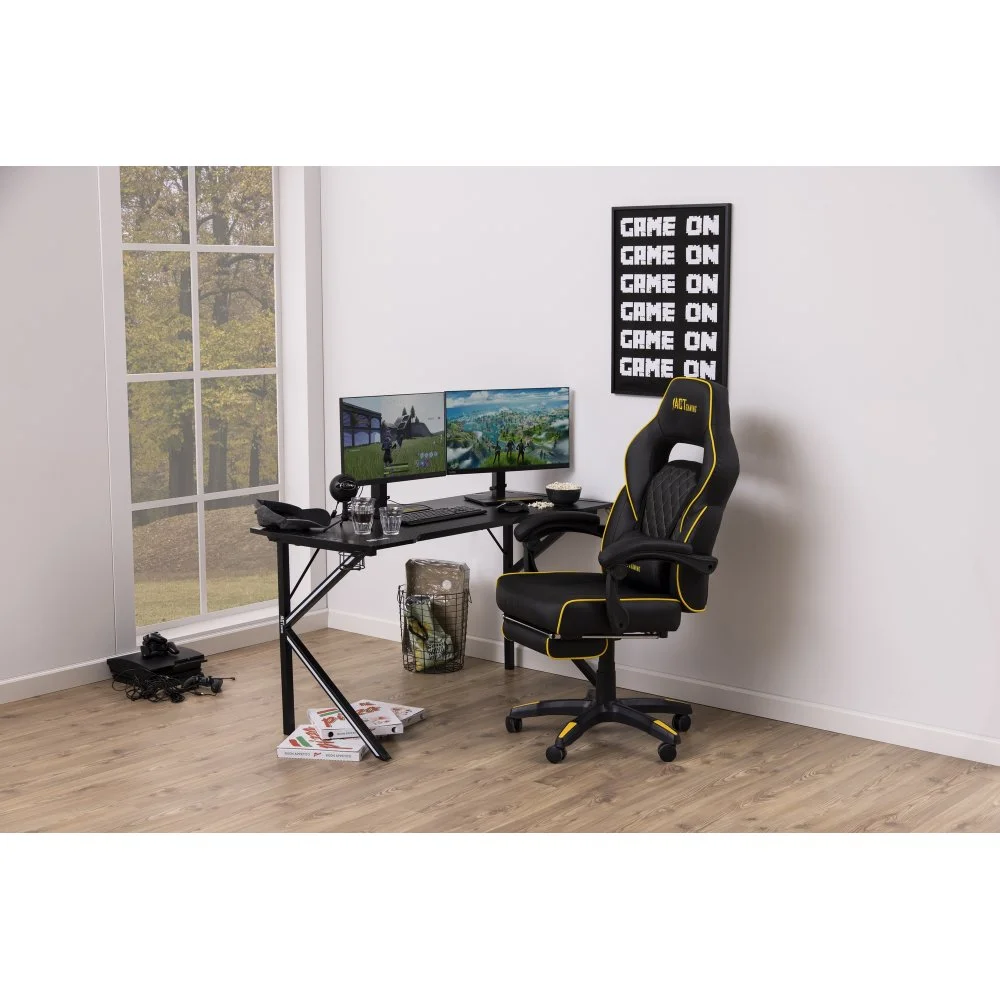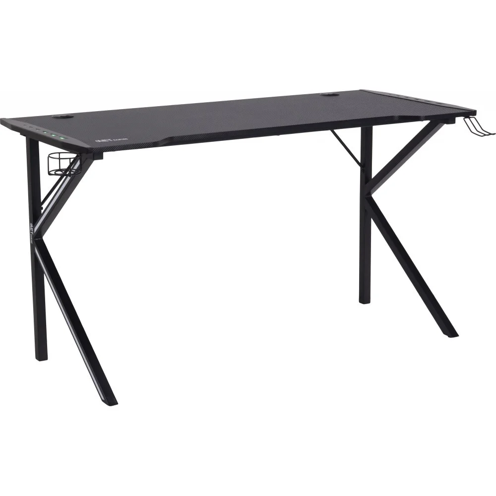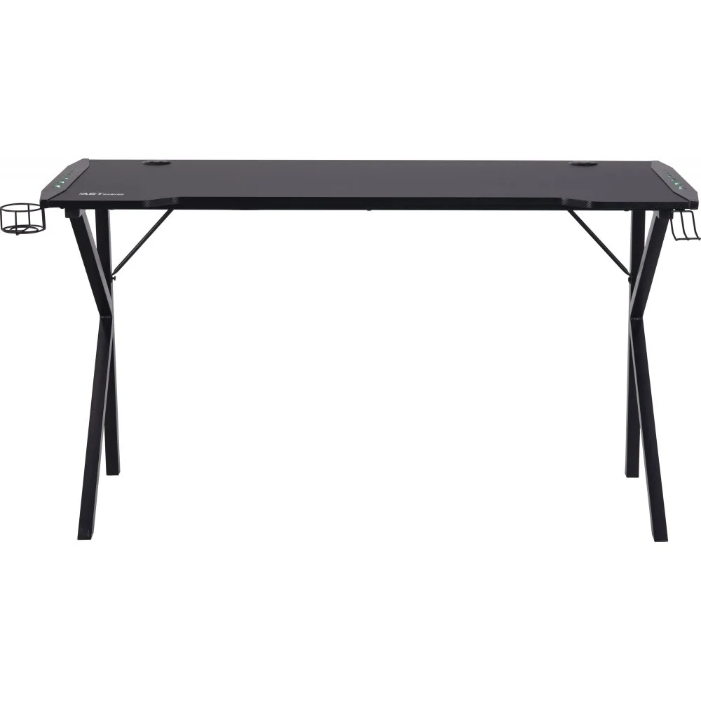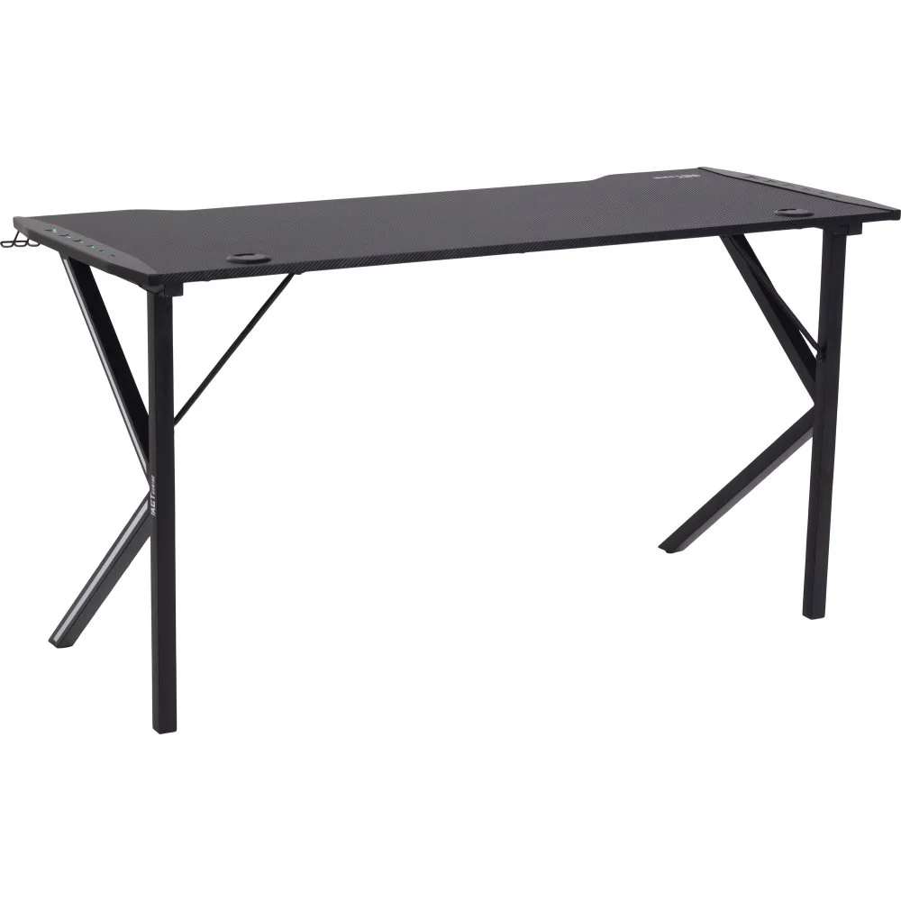 Skrivbord med ben av pulverlackerad metall. Bordsskiva av melamin och MDF.