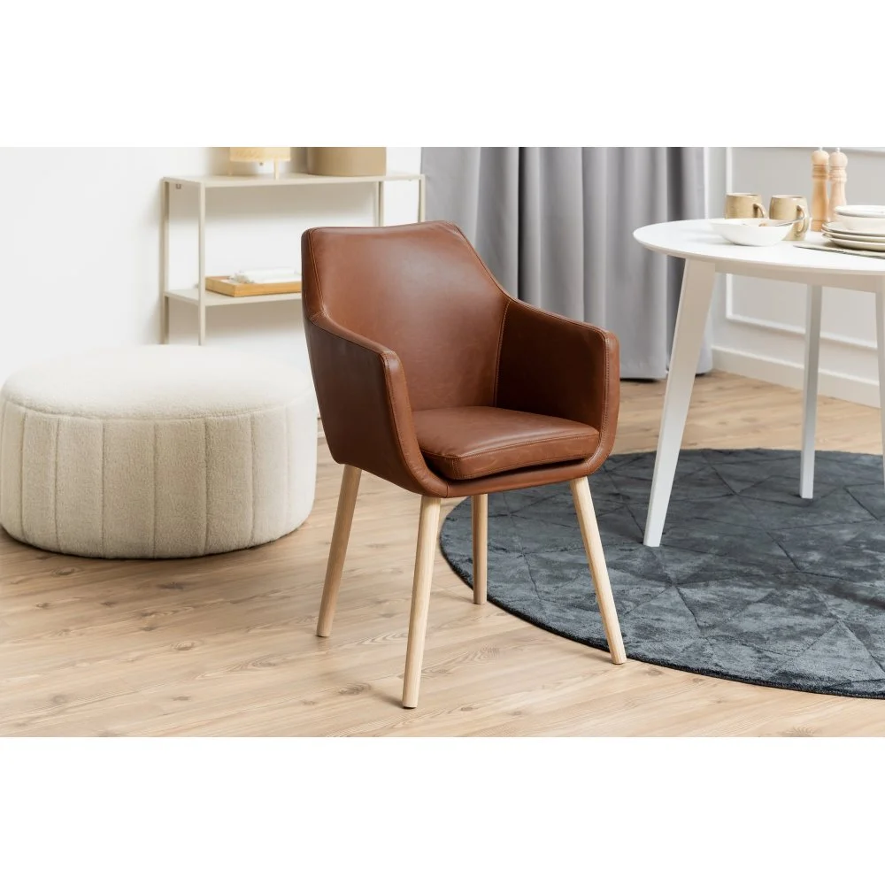 Karmstol med ben av oljad ek och klädsel av PU-läder.