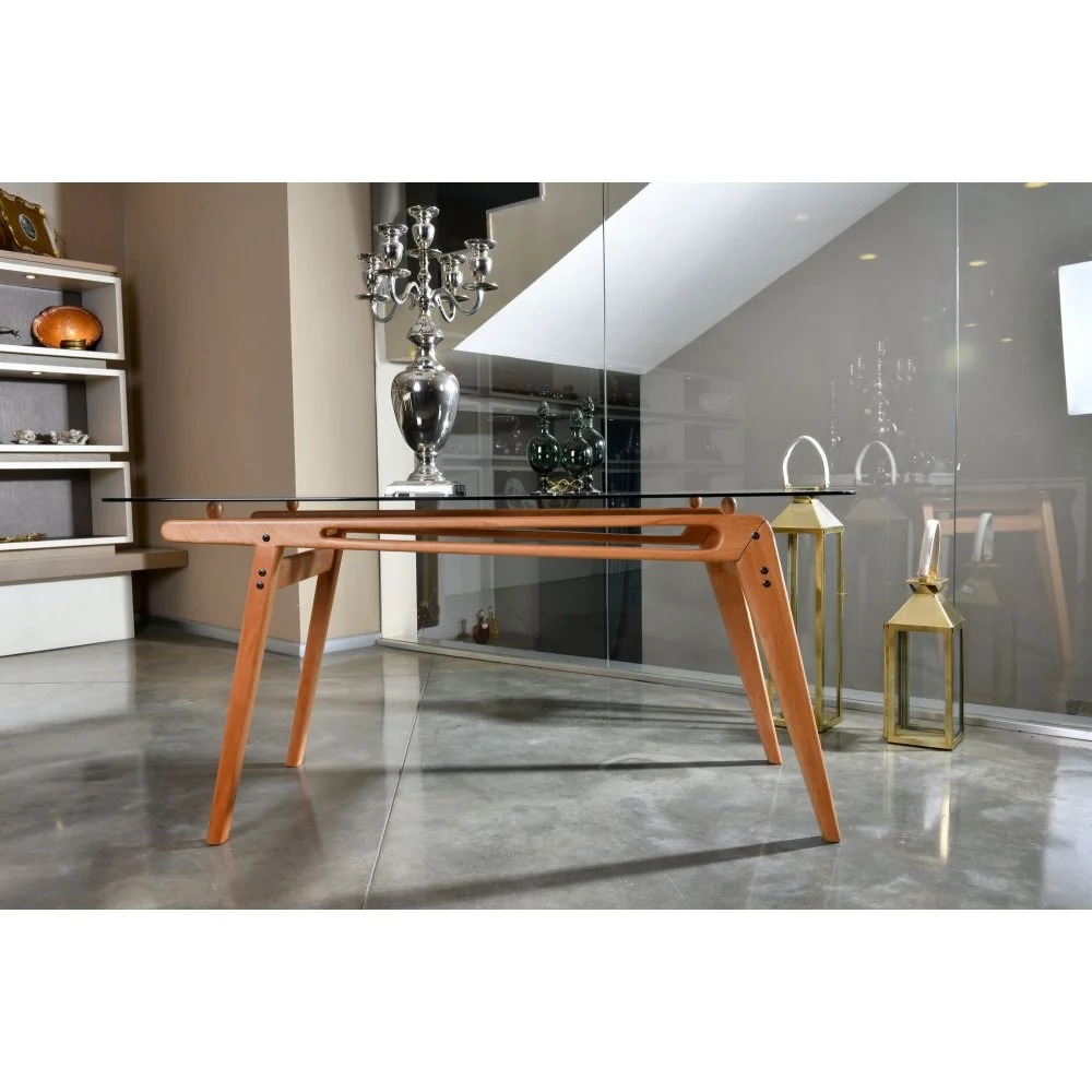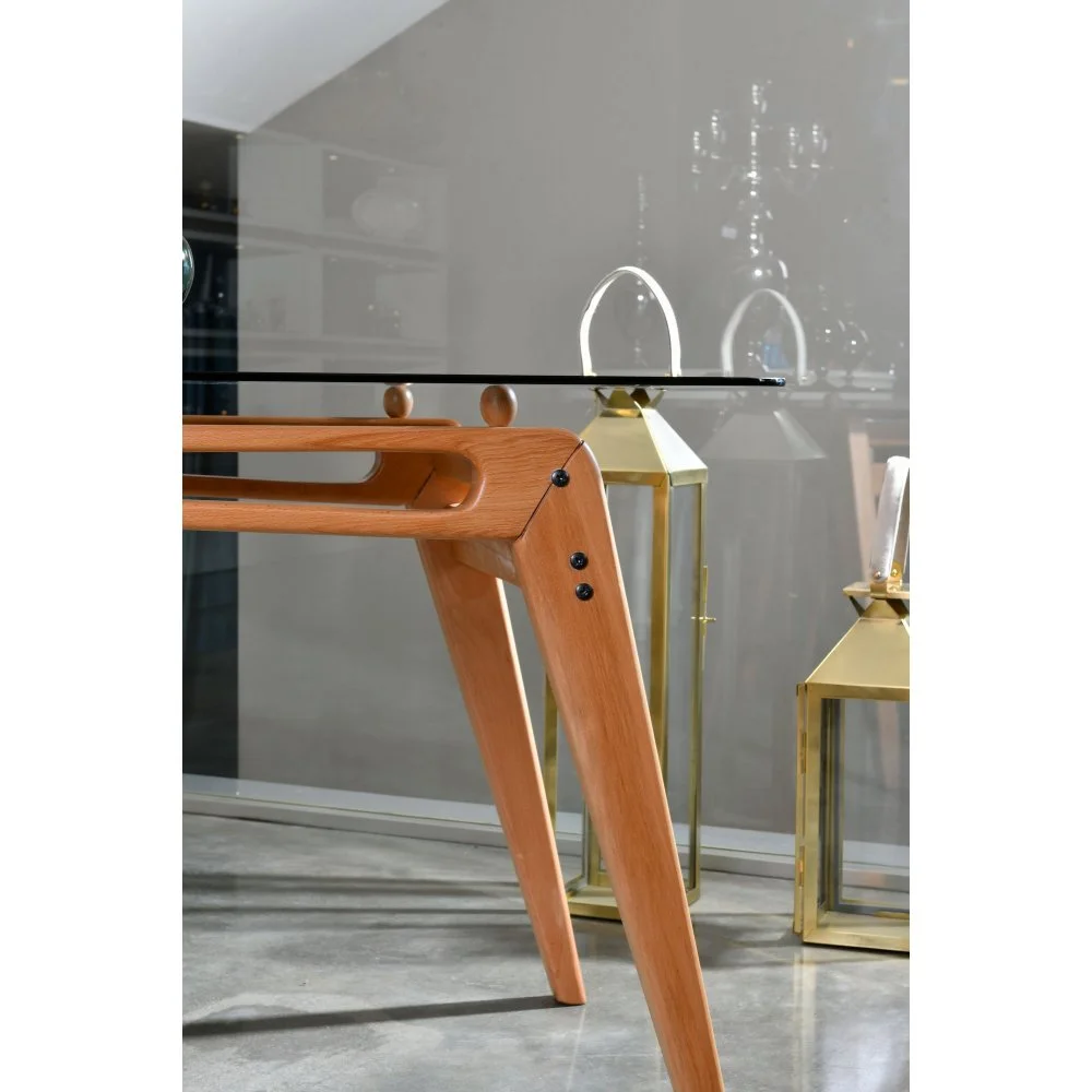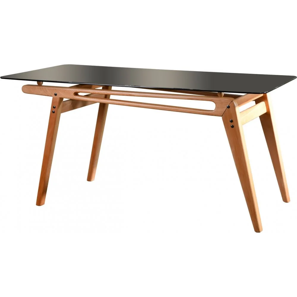 Matbord av avenbok. Bordsskiva av tempererat glas.