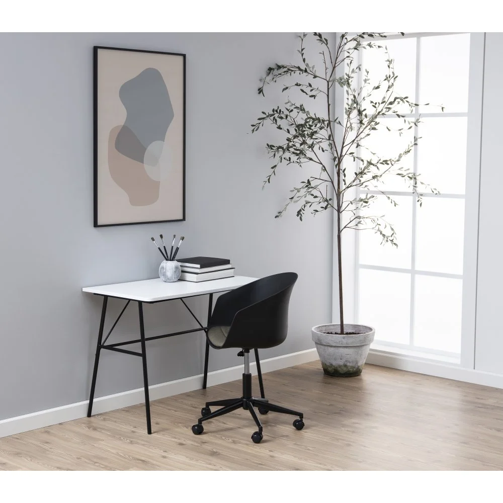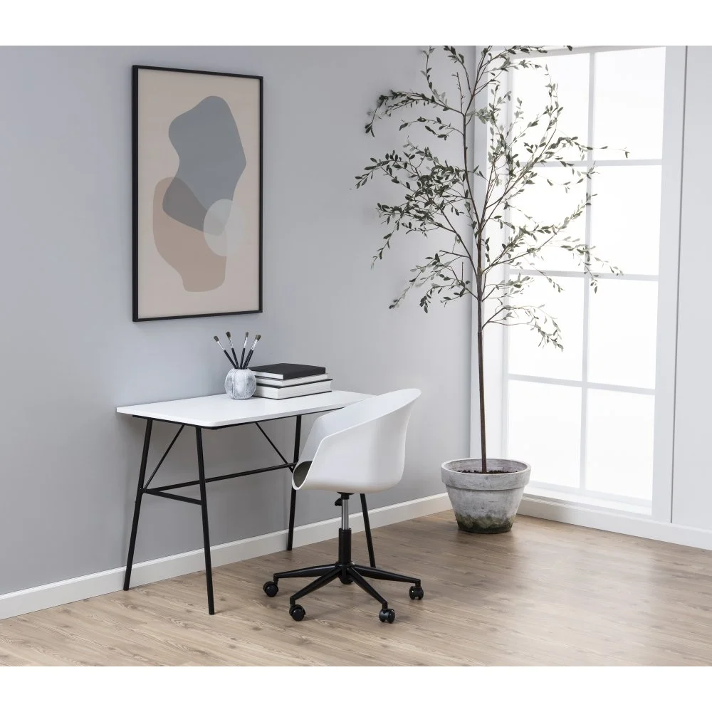 Skrivbord med ben av pulverlackerad metall. Bordsskiva av målad MDF.