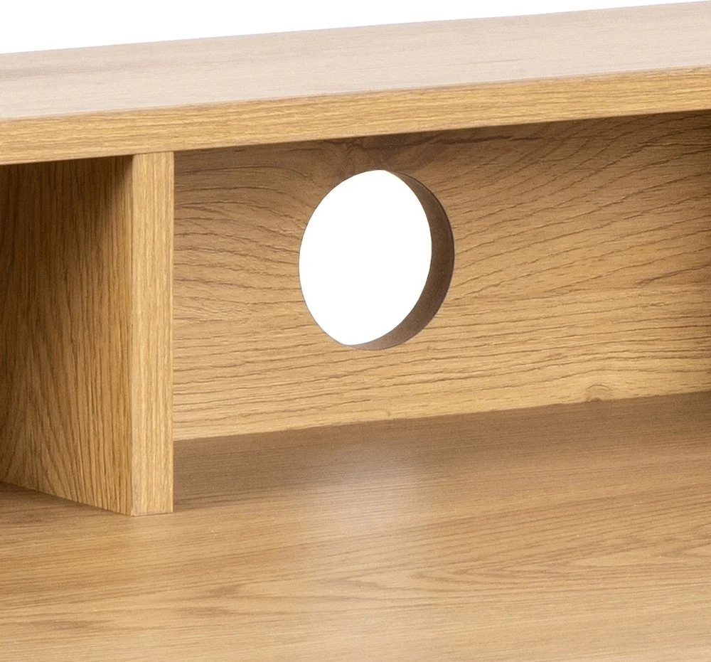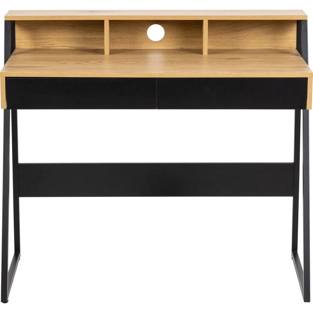 Skrivbord med ben av pulverlackerad metall. Bordsskiva av melamin och MDF.