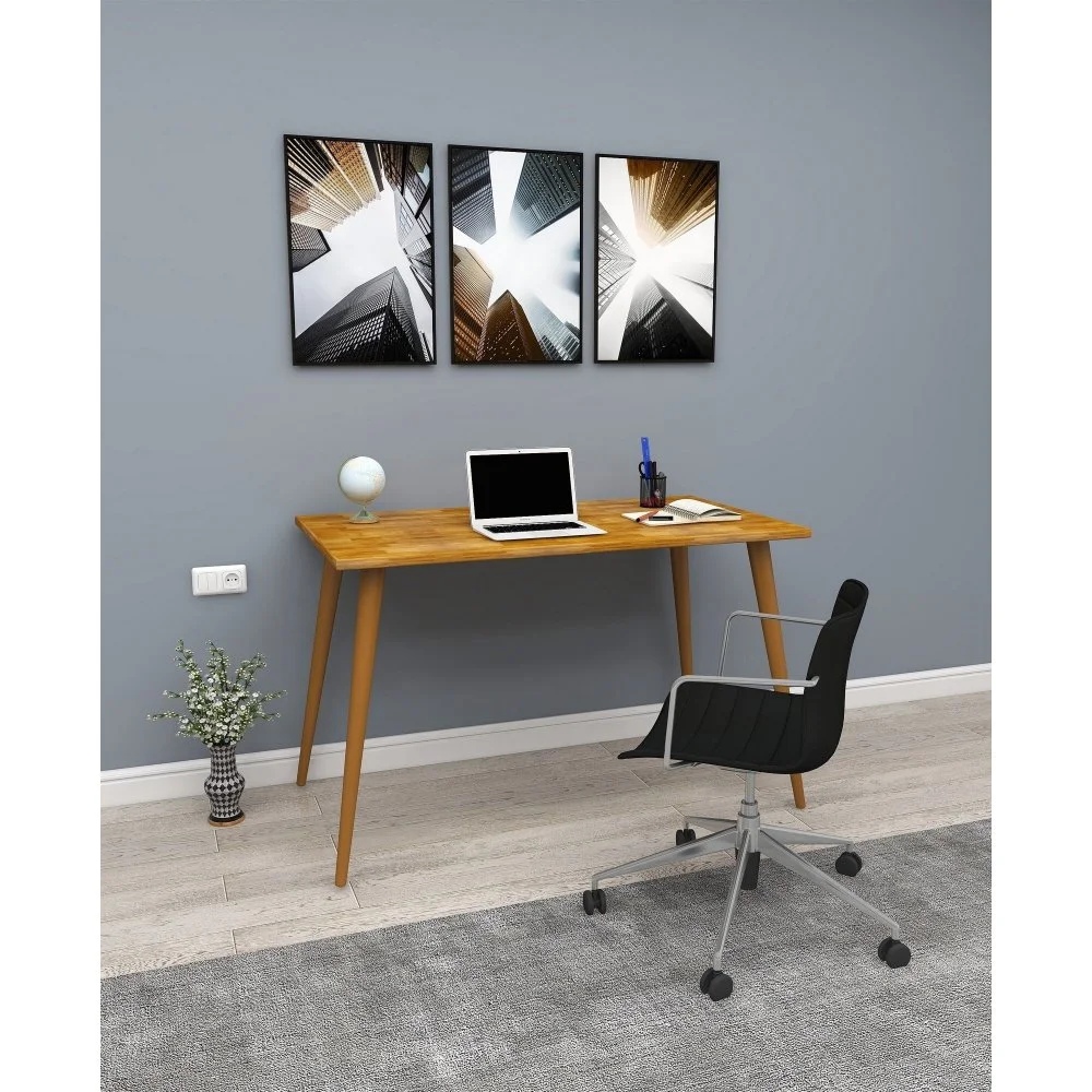 Skrivbord av furuträ.
