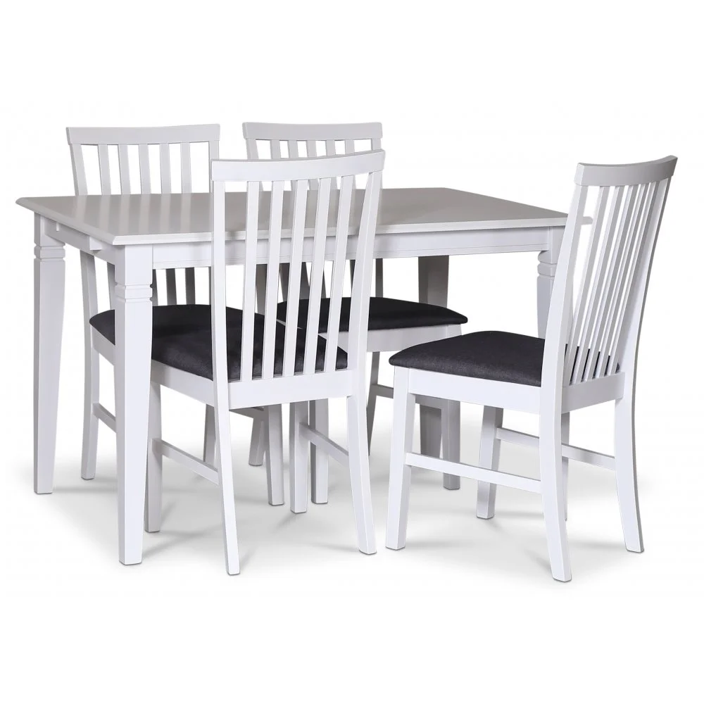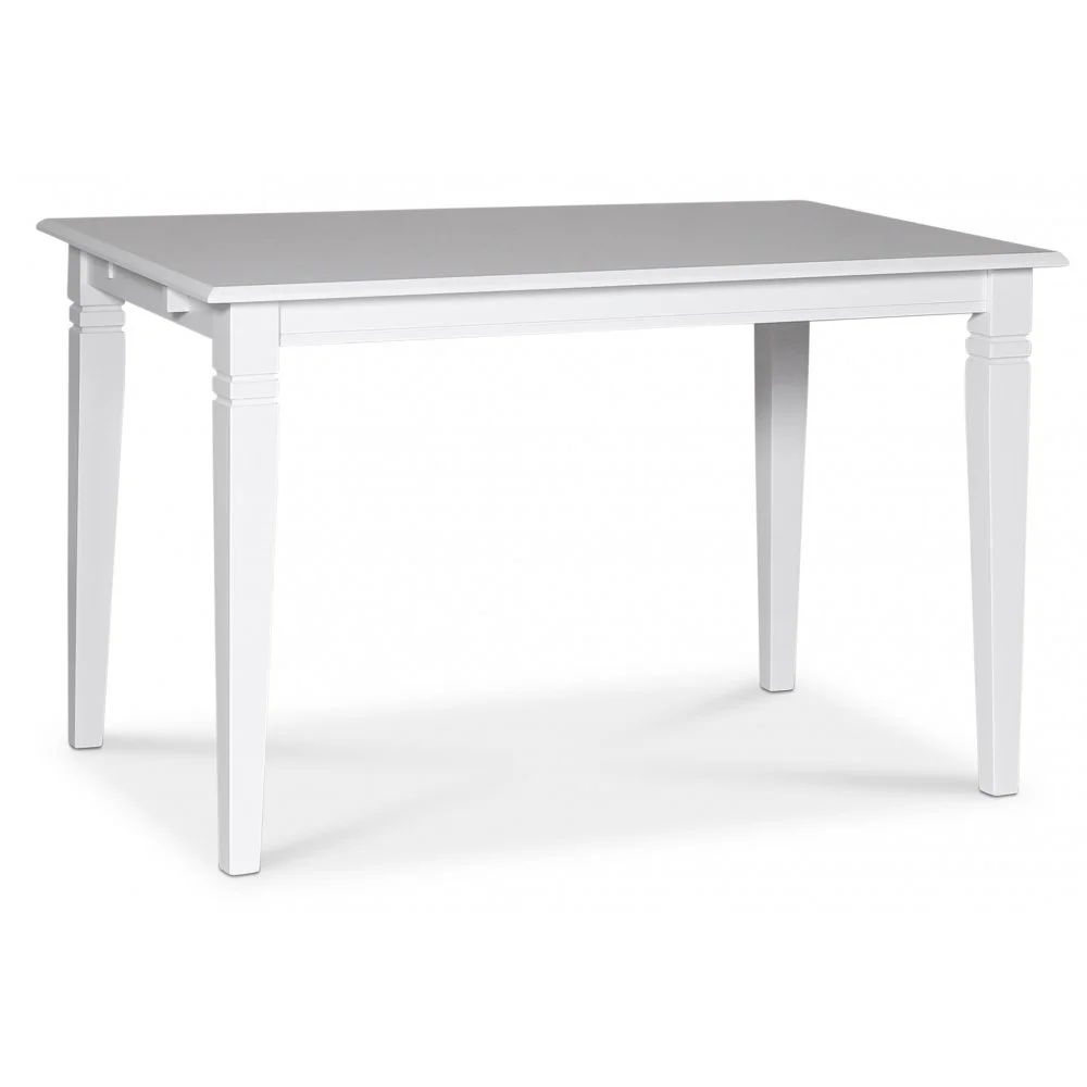 Sandhamn är ett klassiskt matbord med vitlackat underrede och bordsskiva. Bordet är 80 cm brett för att få ett så nätt matbord som möjligt.