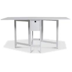 Sandhamn slagbord / Klaffbord är en flexibel möbel för det lilla utrymmet. Matbordet tar nästan ingen plats alls i helt nedfällt läge. I fullt uppfällt läge rymmer Marie ett sällskap på 6 st personer runt om. Praktisk förvaring med en låda på varje långsida av bordet.