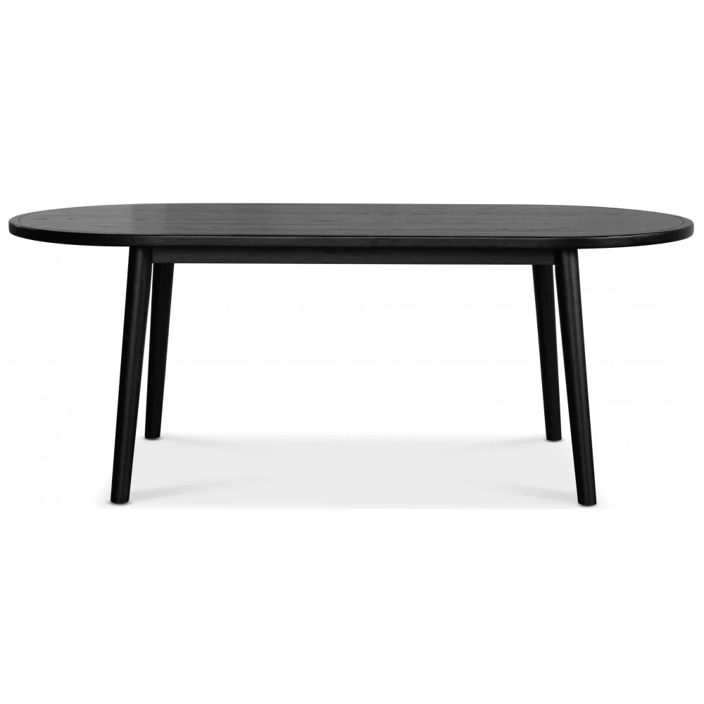 Ett fint matbord med en modern design. Bordsskivan är tillverkad av MDF med ett vackert naturligt svartbetsat ekfanér med bordsben i svartbetsad massiv ek.