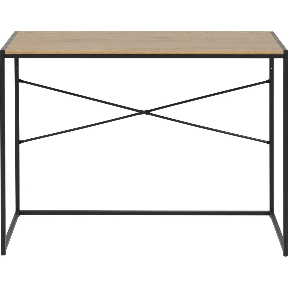 Skrivbord med ben av pulverlackerad metall. Bordsskiva av dekorpapper och MDF.