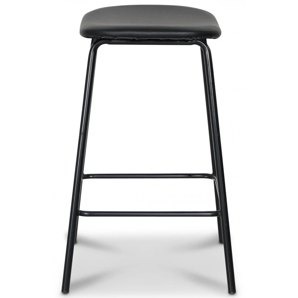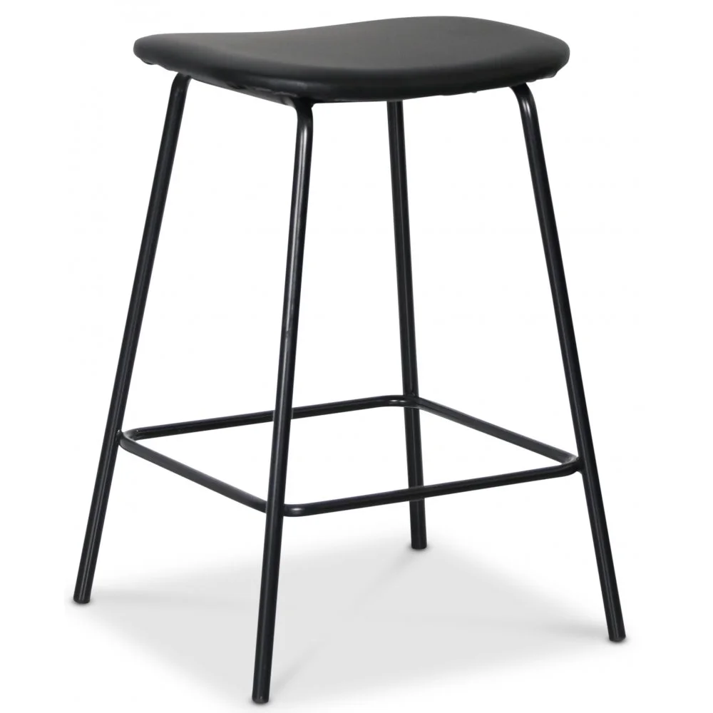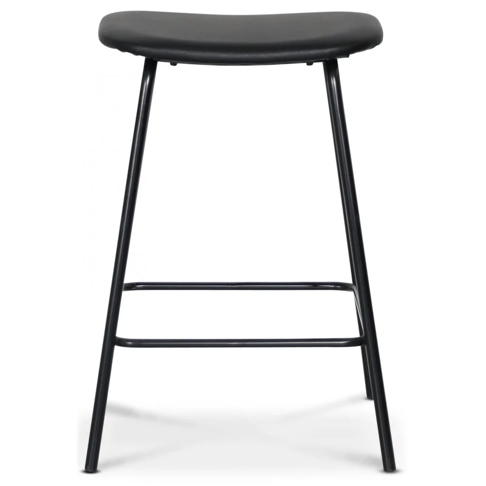 Stilig och modern barstol med sits och dyna i svart PU. Svarta pulverlackade ben.