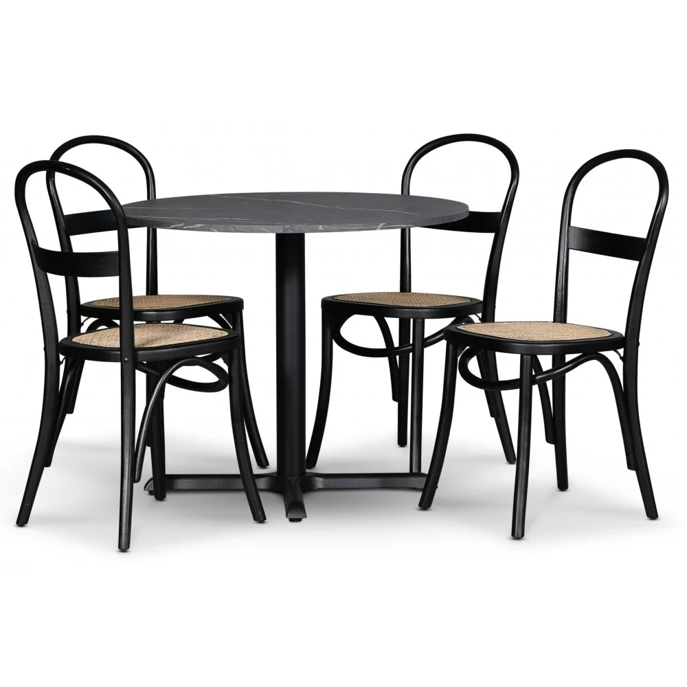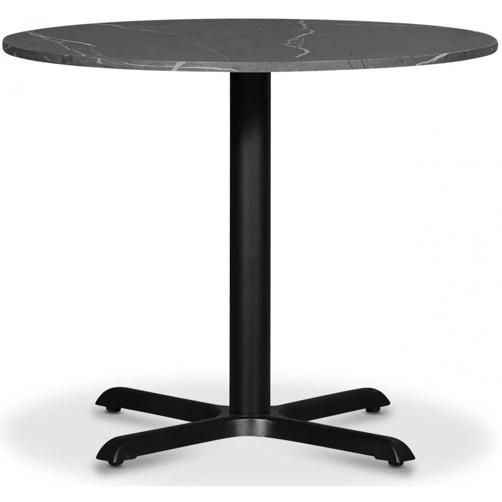 Solano runt matbord med matt svart metallfot och en toppskiva i grå marmorfoliering.