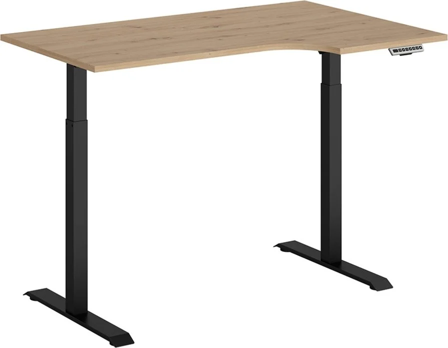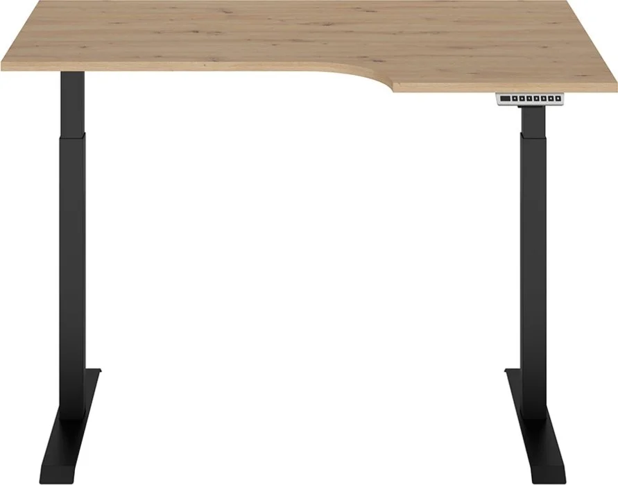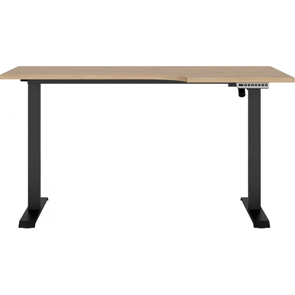 Höj och sänkbart skrivbord av trä med underrede av metall. Kommer ihåg 4 olika höjdinställningar.
