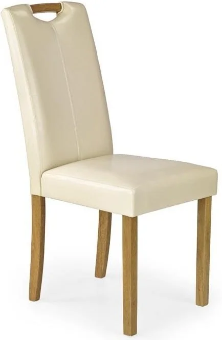En stilfull matstol med en modern design. Underredet är tillverkat i massivt trä med ett härligt bokutförande och sitsen är klädd med ett mycket behagligt krämvitt konstläder för att få den maximala komforten.
