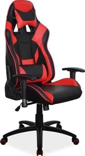 Gamingstol i metall. Klädd med konstläder. Tilt-funktion. Ställbara armstöd.
