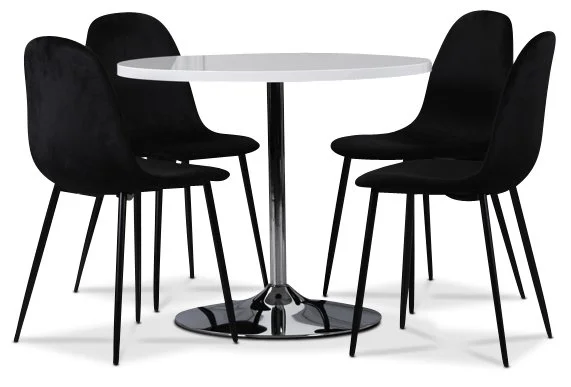Ett snyggt bord med en klassisk design. Bordsskivan är tillverkad i vitlackerad MFP (premium träskiva) med en kromad trumpetfot i metall.