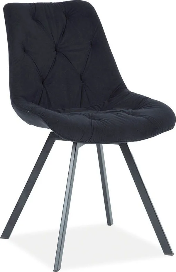 Matstol av metall. Klädd med polyestertyg.