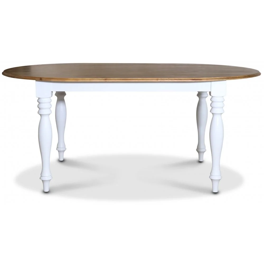 Victoria matbord i klassisk stil. Bordet är robust i massiv furu med vita ben. På varje exemplar sätts en egen prägel då skivan är vaxad för hand vilket framhäver träets naturliga ådring. Varje bord är unikt.