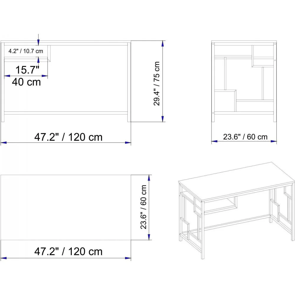 Skrivbord av trä och metall.