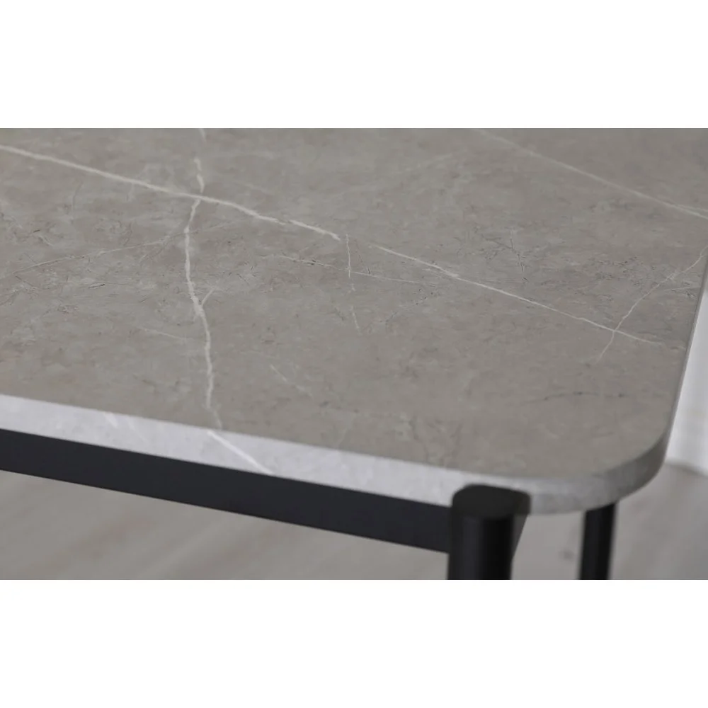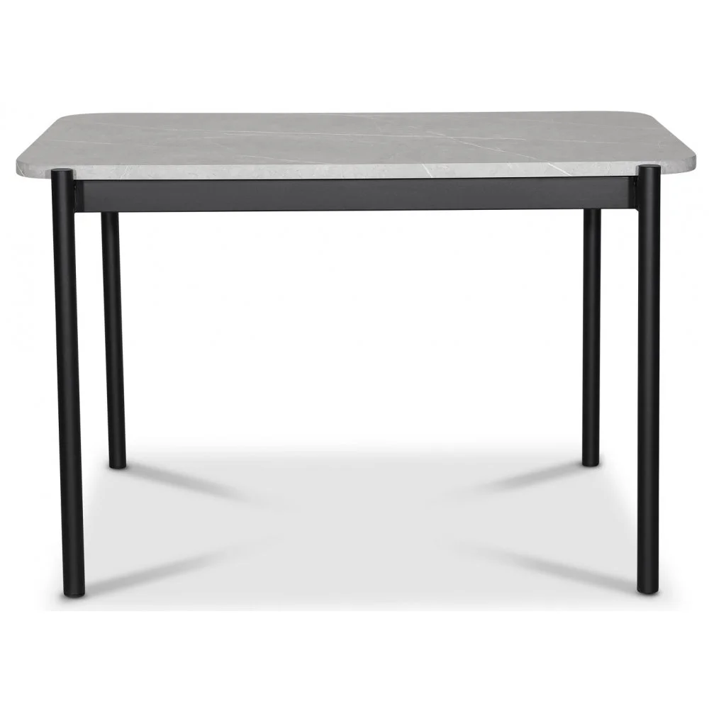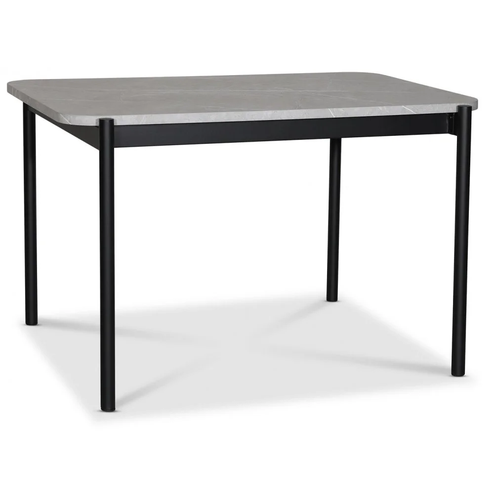Wayne möbelserie är en prisvärd serie med finnes på utförande och designen. Matbordet med toppskiva i tålig ljusgrå marmorfoliering med svart metallunderrede.