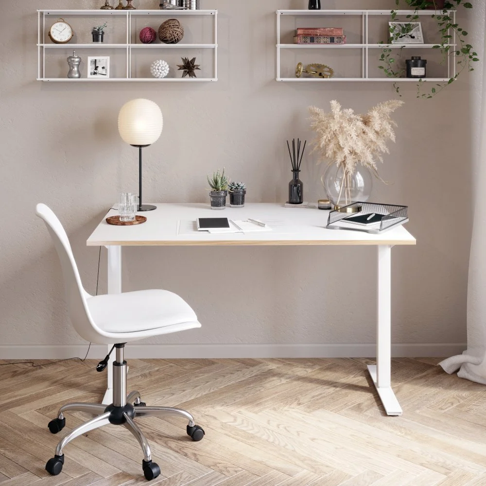 - Wedge är ett praktiskt höj- och sänkbart elektriskt skrivbord. Toppskiva av reptålig och hållbar högtryckslaminat, robust svensktillverkat underrede av metall, tillverkat i Sverige. Toppskivan har en massiv eklist, för att ge kontrast till det vita. Justerbara fötter. Detta skrivbord finns även i svart utförande. Knapparna för att höja och sänka skrivbordet sitt på framsidan av bordskivan för att vara så lättåtkomligt som möjligt.